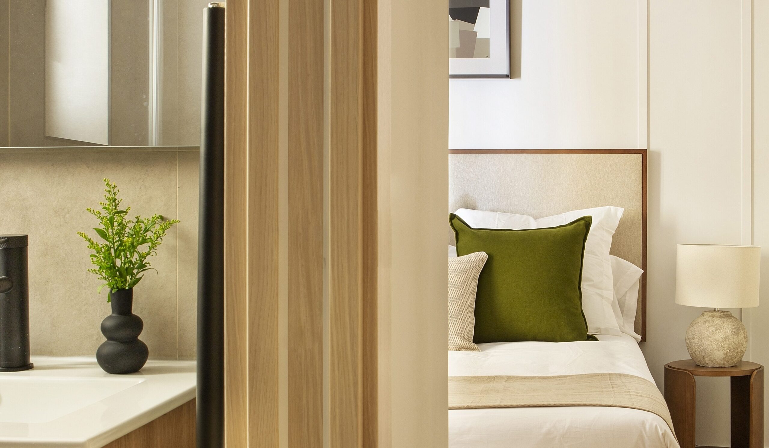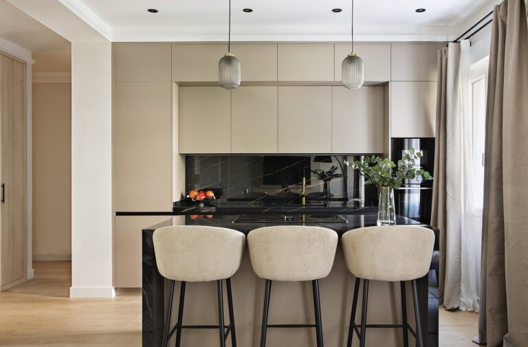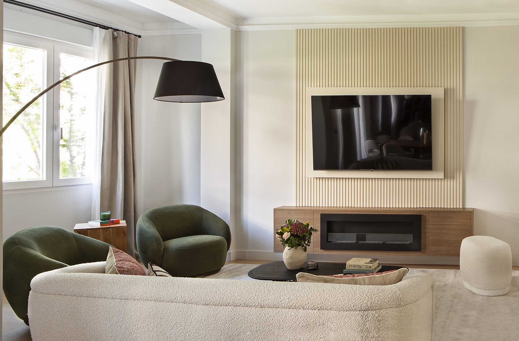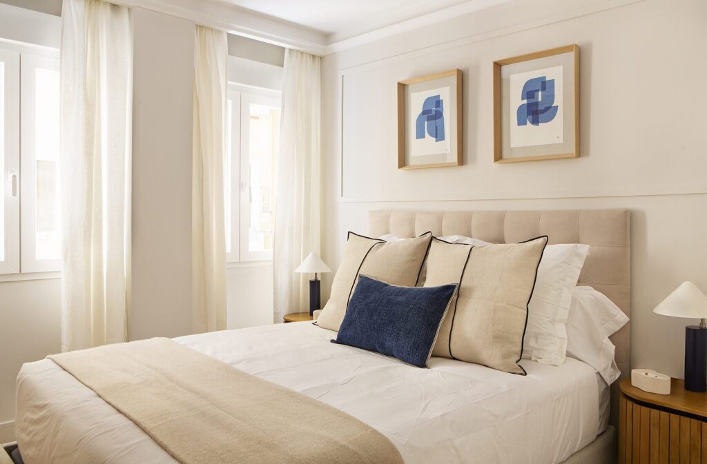 Nueva vida para este piso de los años 50 en una de las principales calles de Madrid donde se apostó por una redistribución completa del espacio. Se incorporó la cocina a la zona común de la vivienda y se plantearon 3 dormitorios con baño propio. La decoración, atemporal y en tonos neutros con ciertos acentos de color, invita a disfrutar sosegadamente de la calma que se respira en cada rincón de la casa.
