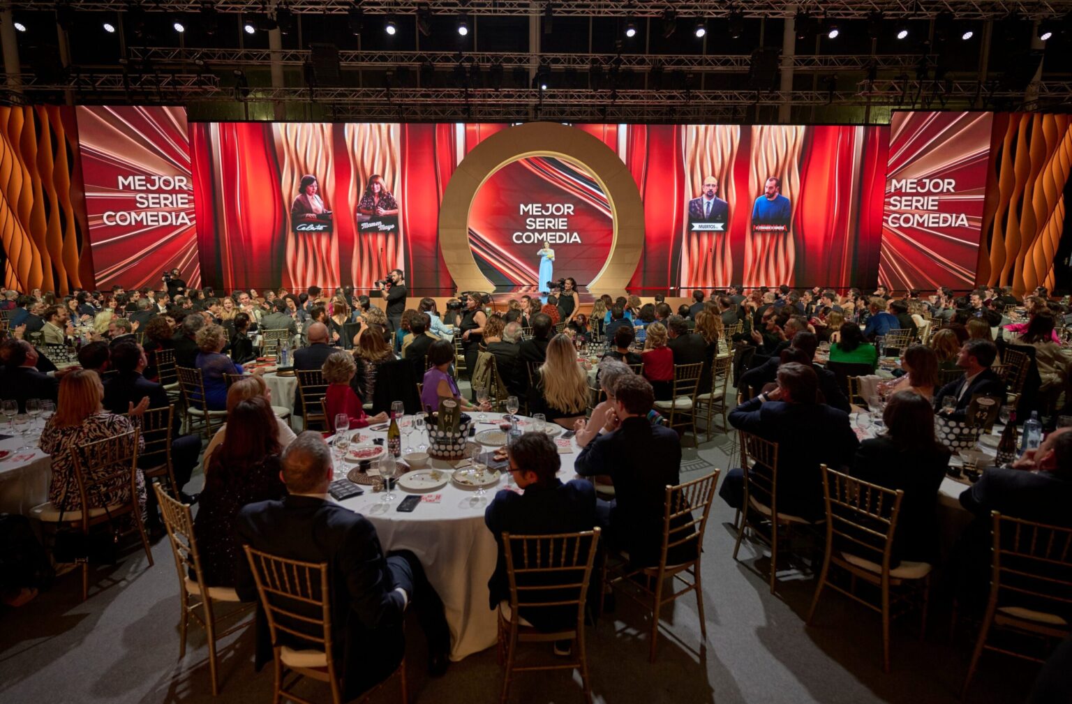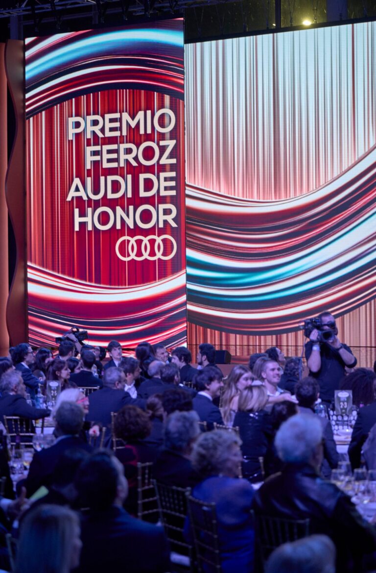 Por quinto año consecutivo, diseñamos la escenografía de los premios Feroz que se celebró en la ciudad de Pontevedra. Inspirador en la relación del cine con el formato 16:9, jugamos con esta proporción en un diseño escalonado de tres niveles de pantallas, creando profundidad y una circulación dinámica. Los elementos construidos también jugaron un papel fundamental en el concepto donde se buscaba la integración total de dichos elementos con la gráfica de las pantallas, desdibujando los límites entre lo corpóreo y lo digital.